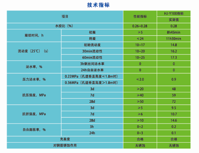 ●產(chǎn)品只有高充盈性,可一次性壓壓漿施工,管道內(nèi)漿體密實(shí)無(wú)空隙。無(wú)氯鹽、亞硝酸鹽、低堿、無(wú)銹蝕作用,無(wú)毒,對(duì)健康和環(huán)境均安全。